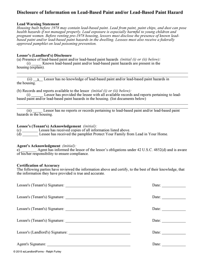 Lead Based Paint Disclosure Certification Ezlandlordforms
